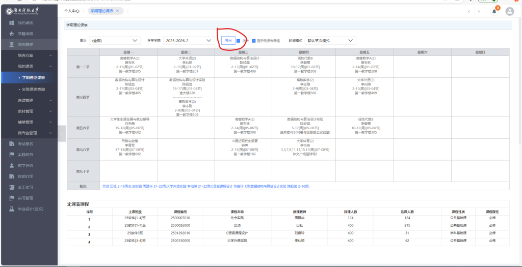 选择学期理论课表
