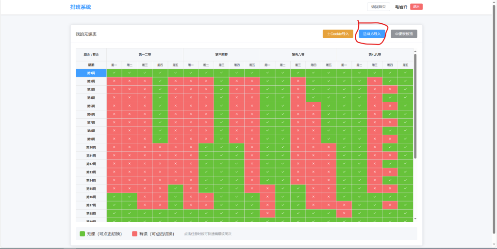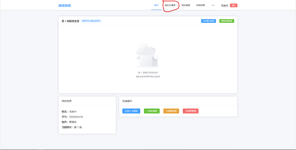 登录排版系统,并点击我的无课表