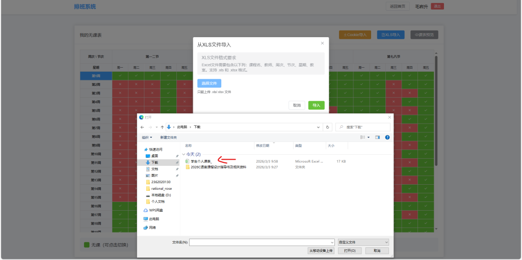 然后选择你的课表文件,并点击导入